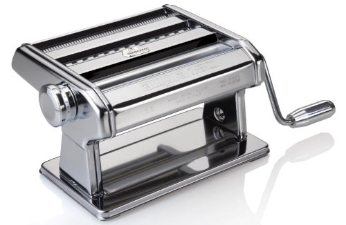 Preis per Stück inklusive MehrwertsteuerSie erwerben hier eine Original italienische Nudelmaschine AMPIA 180 WELLNESS von MARCATOGehäuse aus lebensmittelgeeignetem, eloxiertem Aluminium - verchromtDas Set beinhaltet:o Roller (Auswellgehäuse) zum auswellen der Lasagneplatten in 9 verschiedenen Stärken (verstellbar von 3 mm bis 0,2 mm)o fest integrierter Duplexaufsatz für 2 Nudelsorten (Suppennudeln=Taglioline 1,5 mm UND Halbbreite Nudeln=Fettuccine 6,5 mm)o Hand-Kurbel zur manuellen Bedienungo Tischklammer zur sicheren Befestigungo Reinigungspinsel zur optimalen ReinigungNudelmaschinen-Breite: 180 mm (extra breit)Achtung Bildhinweis: der Griff der Kurbel besteht aus Kunststoff und kann je nach aktueller Produktion in der Farbe variieren...